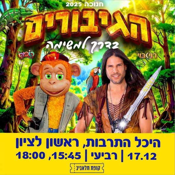 ביום רביעי 17/12 בהיכל התרבות ראשון לציון, 2 הצגות בשעה 15:45 ובשעה 18:00