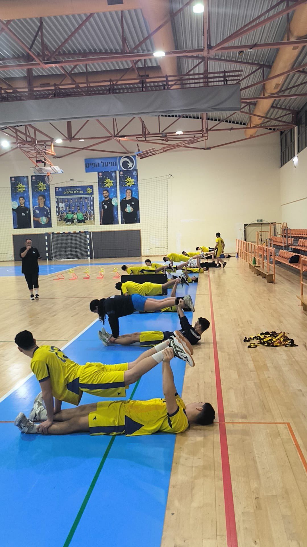 שומרים על שגרה גם בימים מתוחים: שחקני קבוצת הנוער של מכבי ראשון לציון בכדוריד תועדו בממ"ד בזמן אימון