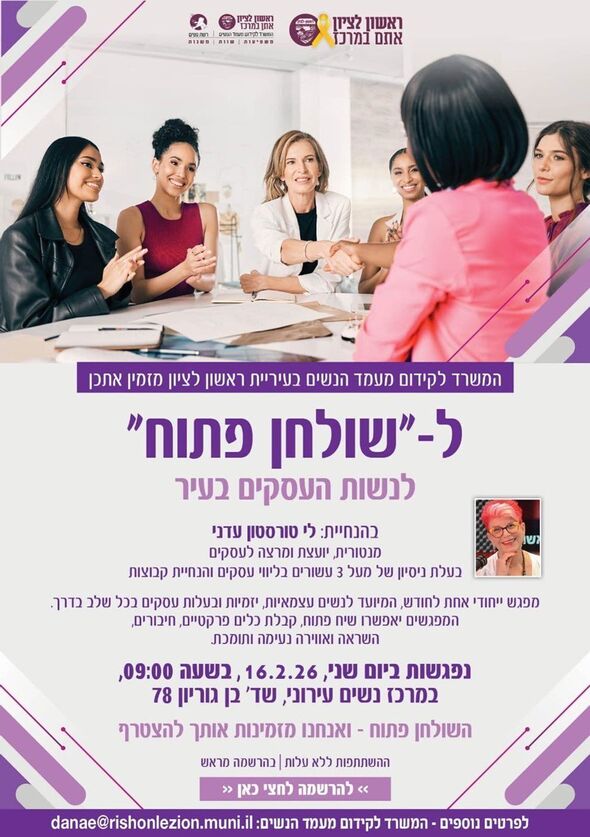 המשרד לקידום מעמד הנשים בראשון לציון יקיים מפגש "שולחן פתוח" לנשות עסקים ב-16.2.26