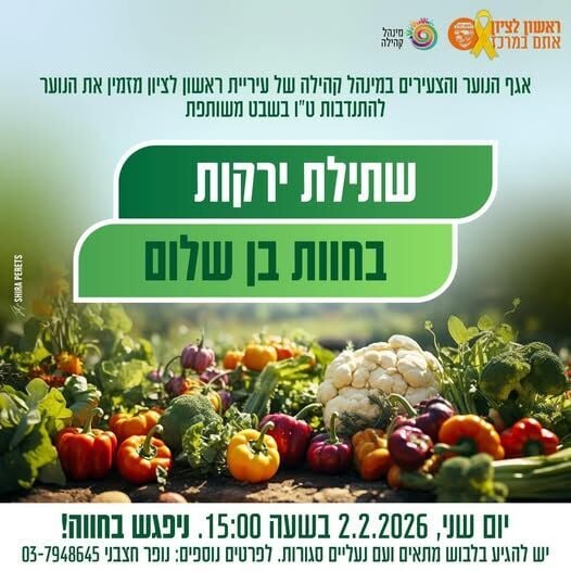 ראשון לציון: פתיחה חגיגית של הגינה הקהילתית ברמת אליהו ברוח ט"ו בשבט תתקיים ביום שני 2.2.2026