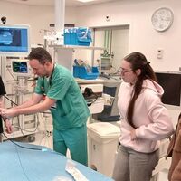 בהמשך הביקור, אירח את התלמידים ד"ר ליאור סלוק, מומחה לפולמונולוגיה (ריאות), במרפאת החוץ. התלמידים נכנסו לחדרי ניתוח פעילים, ביצעו בדיקות תפקודי נשימה ואולטרסאונד של הריאות, ואף התנסו בתפעול מכשירים רפואיים שונים.