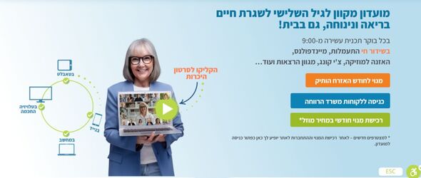 בני הגיל השלישי מוזמנים להצטרף למועדון מקוון הכולל מגוון פעילויות ספורט, הרצאות, קורסים ועוד הפועל בצפייה דרך הטלפון/מחשב/טלוויזיה