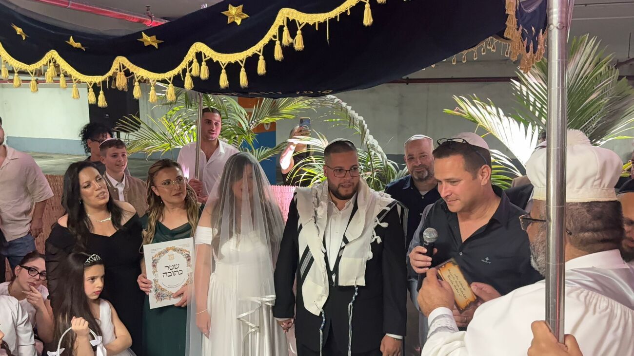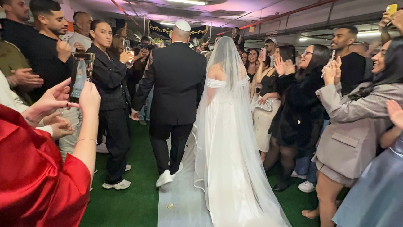 אהבה מנצחת מלחמה: עידו ועומר עזרן, זוג צעירים בני 25 מראשון לציון, נישאו ביום חמישי בחניון בניין העירייה לאחר שחתונתם בוטלה בעקבות המצב הביטחוני והמלחמה.