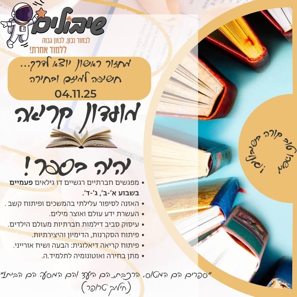 מיזם ייחודי בבית ספר שיבולים בראשון לציון: "יהיה בספר" - מועדון קריאה דו-גילאי לחיזוק אהבת הקריאה ופיתוח כישורי שיח