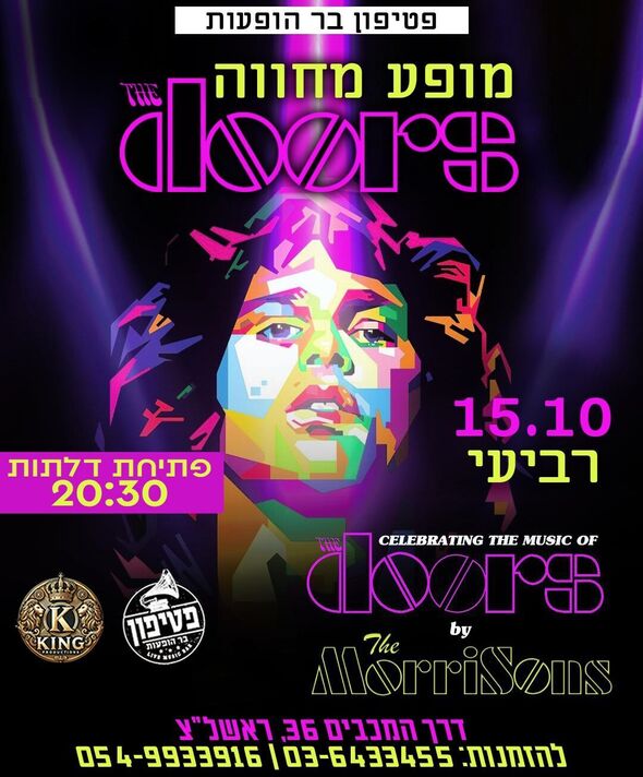 להקת "The Morrisons", בניצוחו של הסולן איתי יצחקי, תקיים מופע מחווה ללהקת הרוק האגדית "The Doors". המופע יתקיים בפטיפון בר בראשון לציון ברחוב דם המכבים 36 היום רביעי, 15 באוקטובר, בשעה 21:45.