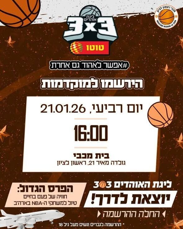 מכבי ראשון לציון בכדורסל מזמינה את האוהדים לליגת האוהדים 3X3: הזדמנות לזכות בטיסה ל-NBA