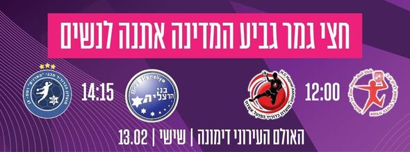 משחקי חצי גמר גביע המדינה בכדוריד נשים יתקיימו ביום שישי ה-13.2: הפועל ראשון לציון תפגוש את הפועל אשדוד וארזים רמת גן תפגוש את הרצליה- מכירת הכרטיסים החלה