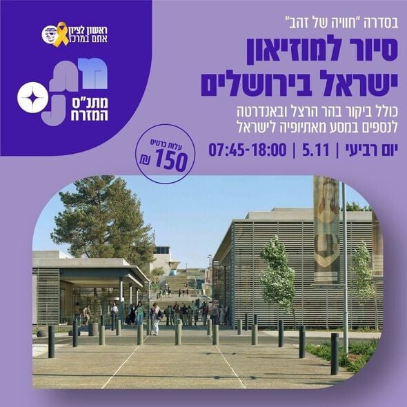 במסגרת סדרת "חוויה של זהב", יתקיים סיור למוזיאון ישראל ולהר הרצל ביום רביעי, 5 בנובמבר 2025, בין השעות 07:45 ל-18:00.