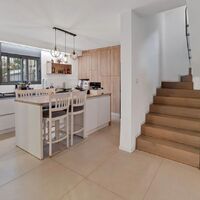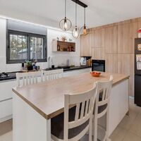 קומת כניסה : מטבח משולב אינדוקציה וגז, פינת אוכל, סלון, שירותי אורחים וירידה למרתף.
