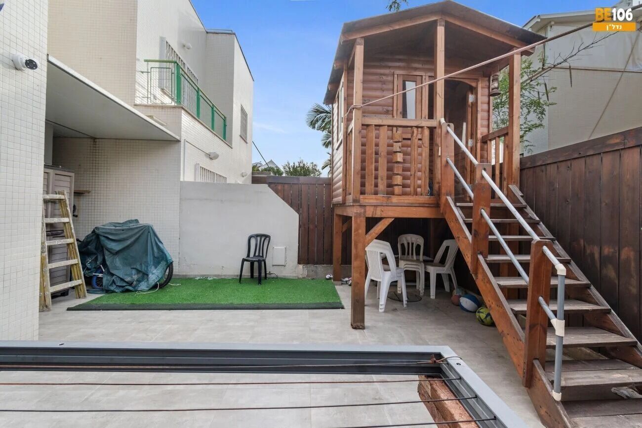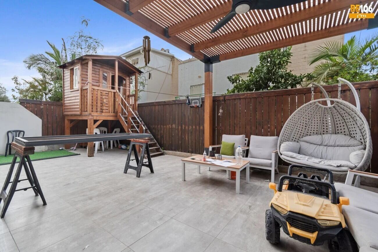 חצר אחורית: 60 מטר עם פרגולה ובית עץ אמיתי לילדים.