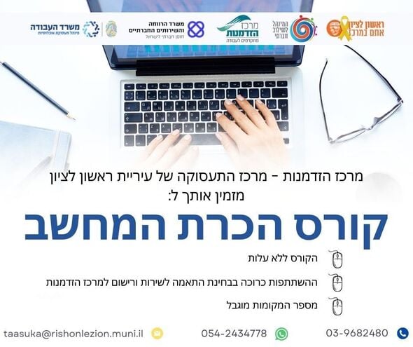 מרכז הזדמנות בראשון לציון משיק קורס מחשבים תעסוקתי בסיסי ללא עלות שיחל בשלישי 27.1