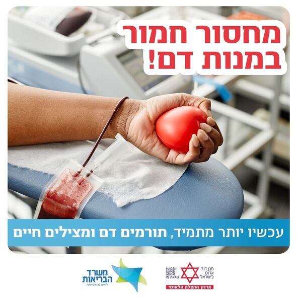 לאור מחסור חמור במנות דם בישראל, מגן דוד אדום ומשרד הבריאות קוראים לציבור להגיע ולתרום דם. בהודעה שפורסמה הודגש כי קיים מחסור משמעותי, בעיקר במנות מסוג O, אך הצורך קיים בכל סוגי הדם.
