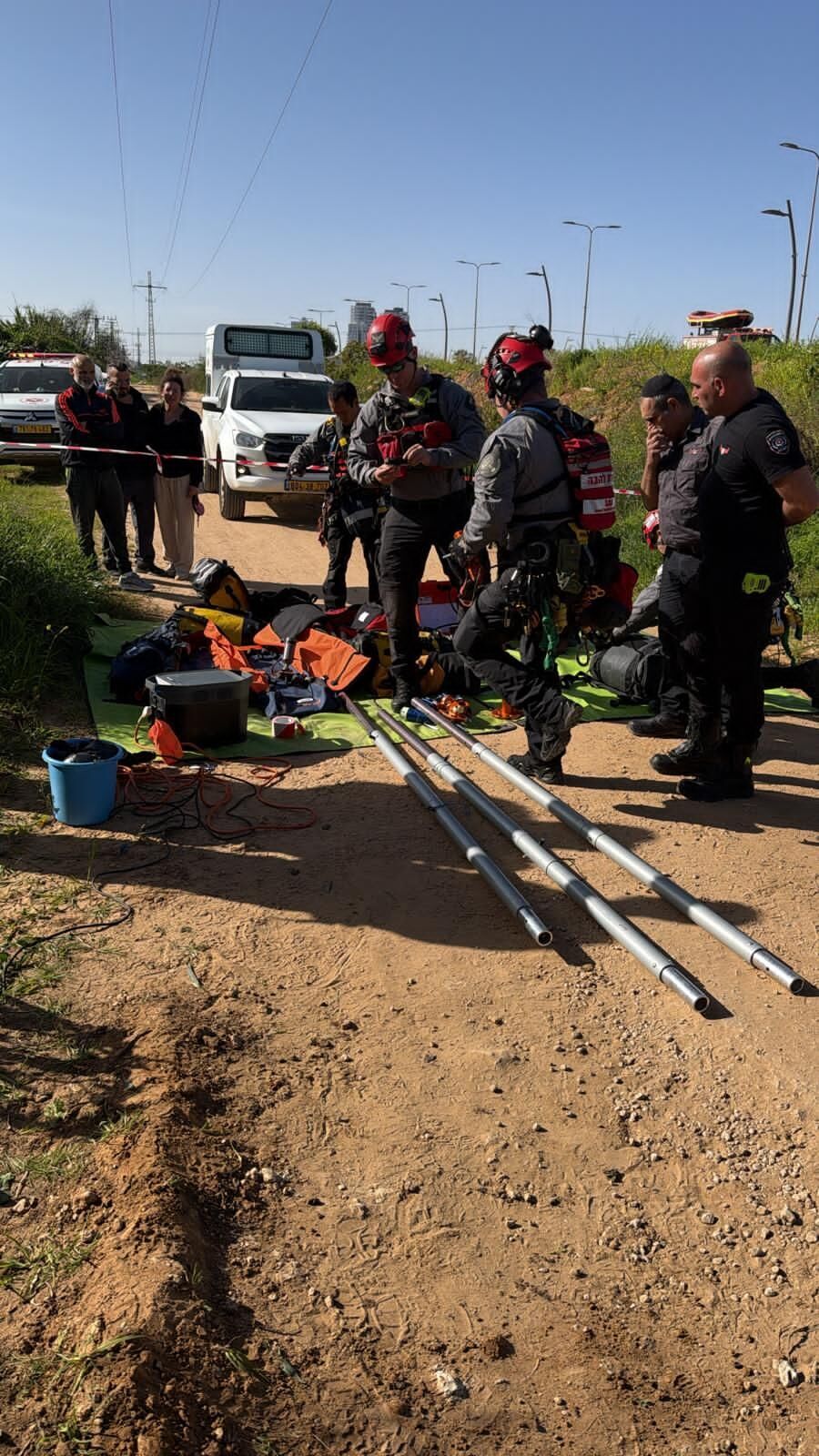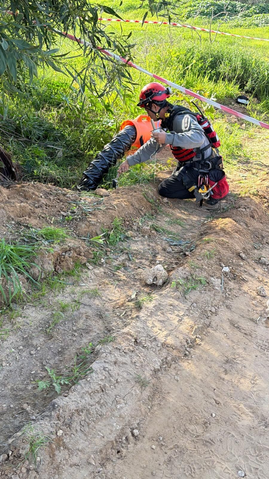 הכלבה חולצה כשהיא בחיים והועברה להמשך טיפול רפואי ובדיקות אצל גורמי הרפואה הווטרינריים.