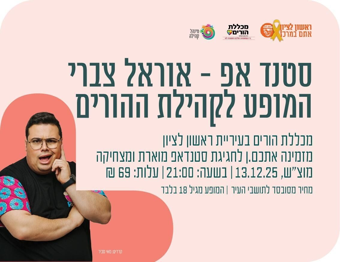 חוגגים את חנוכה במכללת הורים של עיריית ראשון לציון: מופע סטנדאפ של אוראל צברי ב-13.12.25 במחיר מיוחד של 69 שקלים בלבד