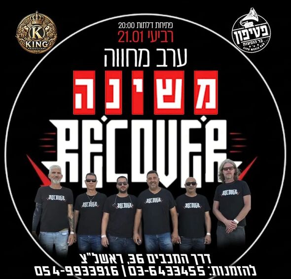 הערב רביעי 21/1 להקת ריקאבר במופע מחווה ללהקת משינה בפטיפון בר בראשון לציון: כל הלהיטים הגדולים וכרטיסים בהנחה מיוחדת