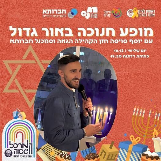 הדלקת נרות ומופע קהילתי בנחלת ואברמוביץ': מופע לילדים, יצירה וחלוקת סופגניות. בשעה 17:00, אולם ספורט בי"ס יפה נוף, רח׳ האורנים 4. כניסה חופשית בהרשמה מראש.