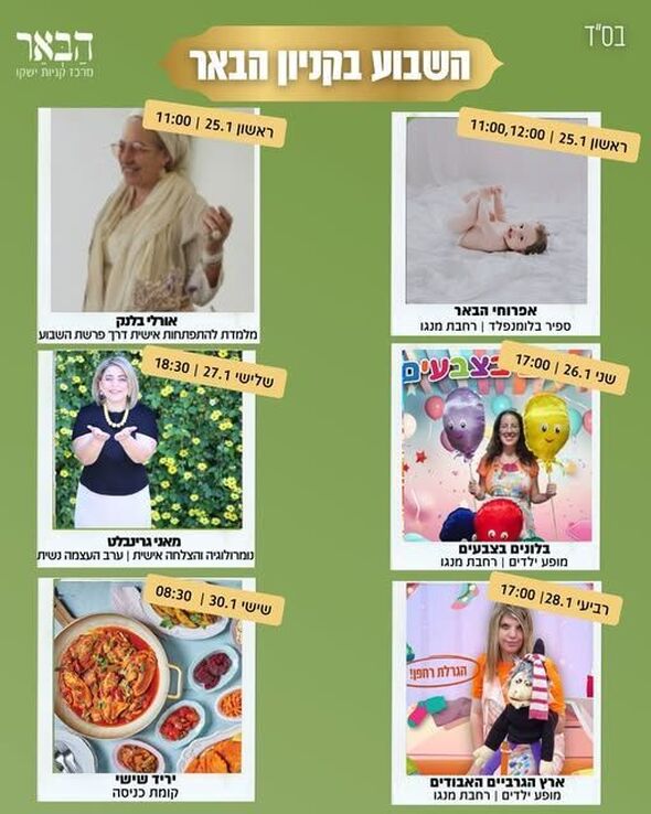 במסגרת הסדנה, ייחשפו הקטנטנים לסוגי מוזיקה שונים ולמגוון כלי נגינה. הפעילות נועדה ליצור אינטראקציה ולפתח את הקשב אצל הילדים באמצעות המוזיקה.