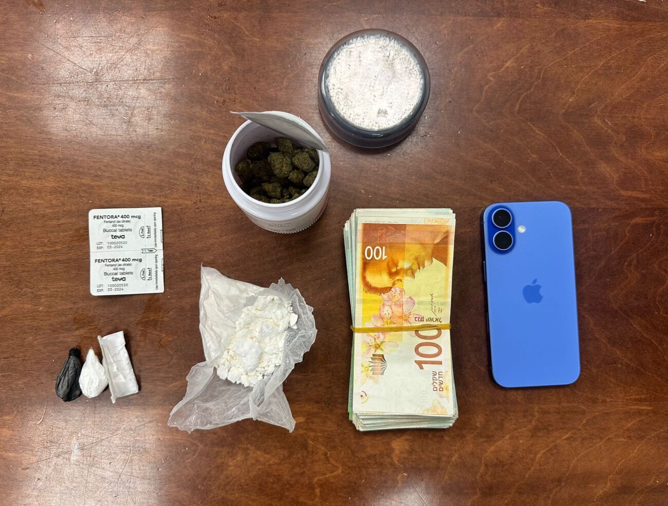 במהלך הפעילות נתפסו במקום ממצאים רבים, ביניהם: 53 גרם חומר החשוד כקוקאין, 63 גרם חומר החשוד כמריחואנה, 32,000 שקלים במזומן, 2,700 דולר, 1,000 יורו ומשקל אלקטרוני.
