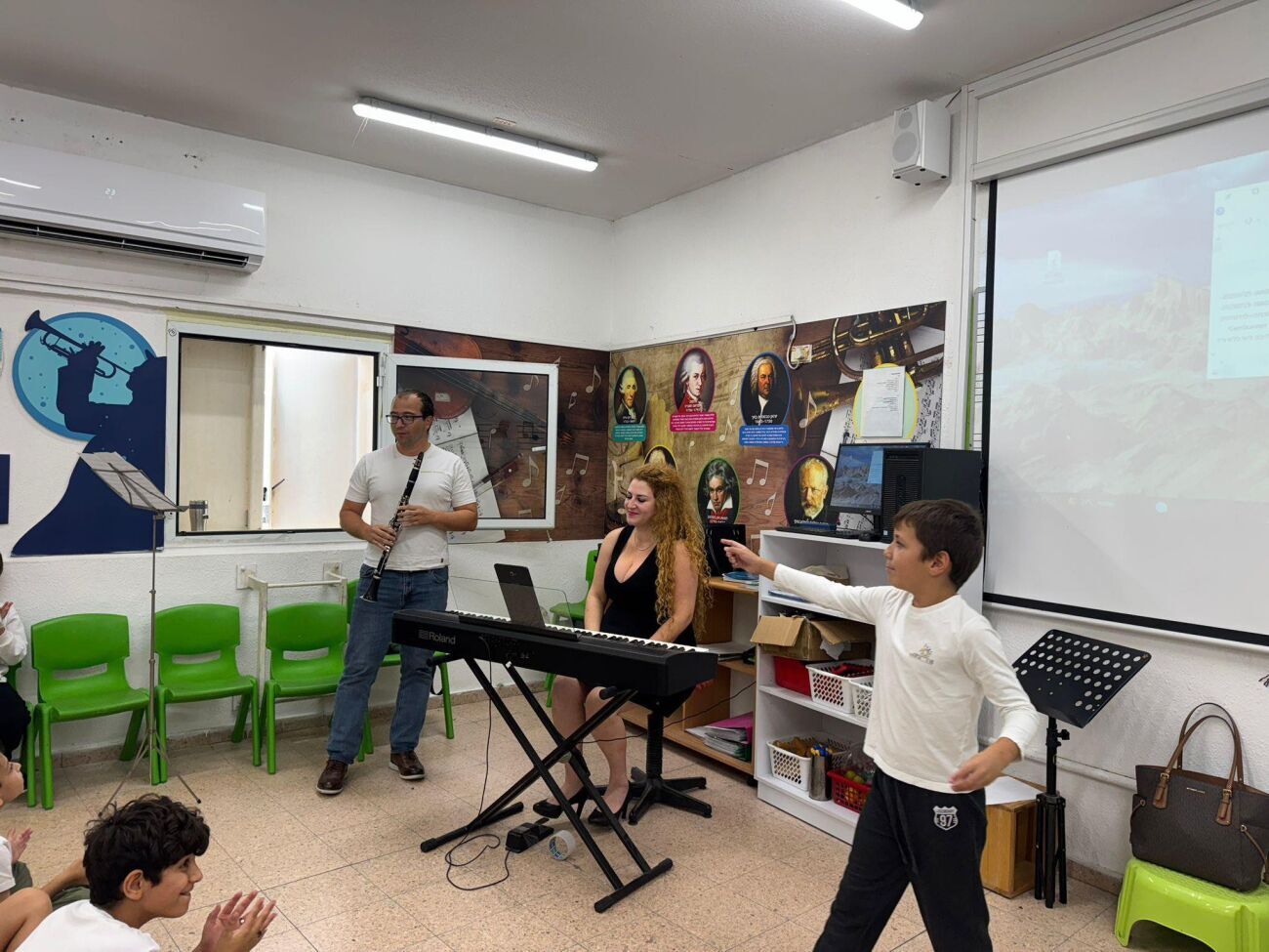 בני הזוג, הוריו של דניאל קרצוביצקי הלומד בכיתה ד'1 בבית הספר, העבירו יחד עם בנם שיעור מוזיקה מיוחד לתלמידי שכבת כיתות ד'.