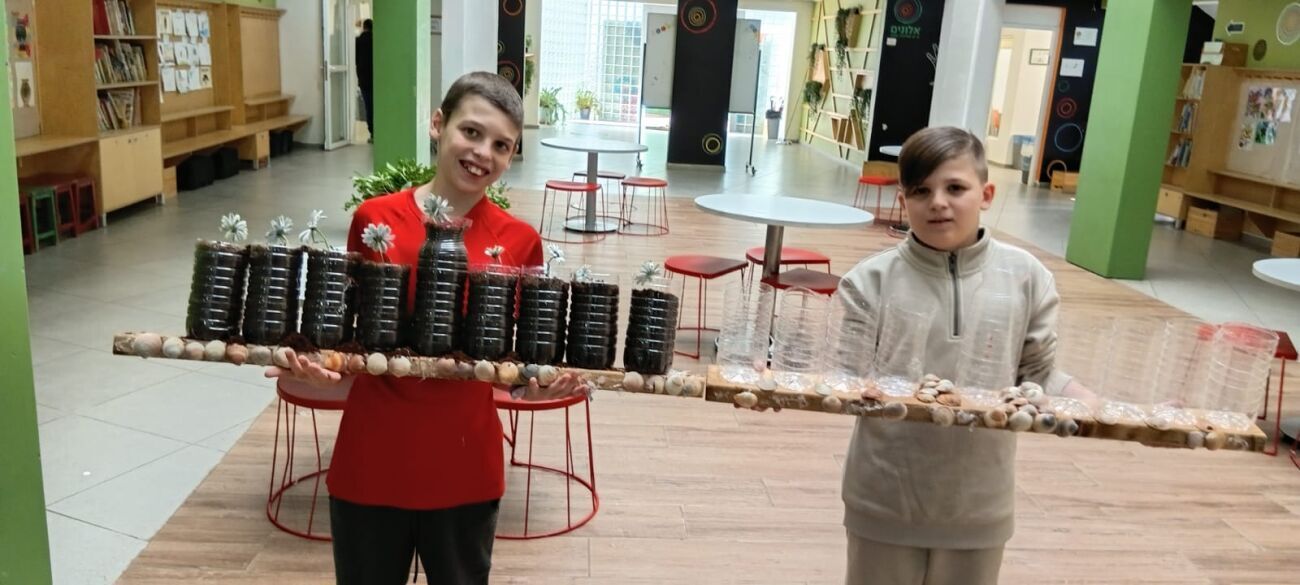 במקביל, עסקו התלמידים ביצירה ובהנדסה סביבתית ובנו חנוכיות מחומרים ממוחזרים. המשתתפים מדדו, תכננו ועיצבו חנוכיות מקוריות מענפים, תרמילי צאלון, אצטרובלים, קפסולות קפה ובקבוקים ממוחזרים. חלק מהחנוכיות עוצבו כעציצים חיים, ובהן נשתלו פרחי הענה, כשילוב ייחודי בין אור, טבע וקיימות.