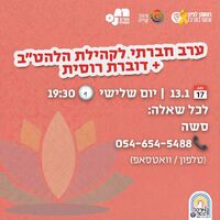 האירוע מיועד להורים ולקטנטנים בגילאי חצי שנה ועד שנתיים. המפגש ייערך ביום רביעי, ה-14 בינואר, בשעה 10:30.