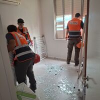 בגזרת בני ברק, חובשים ופראמדיקים של מד"א מעניקים טיפול רפואי ומפנים לבי"ח איכילוב, גבר כבן 60 במצב בינוני עם פציעות רסיסי זכוכית בראש.