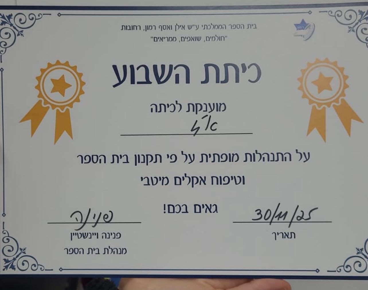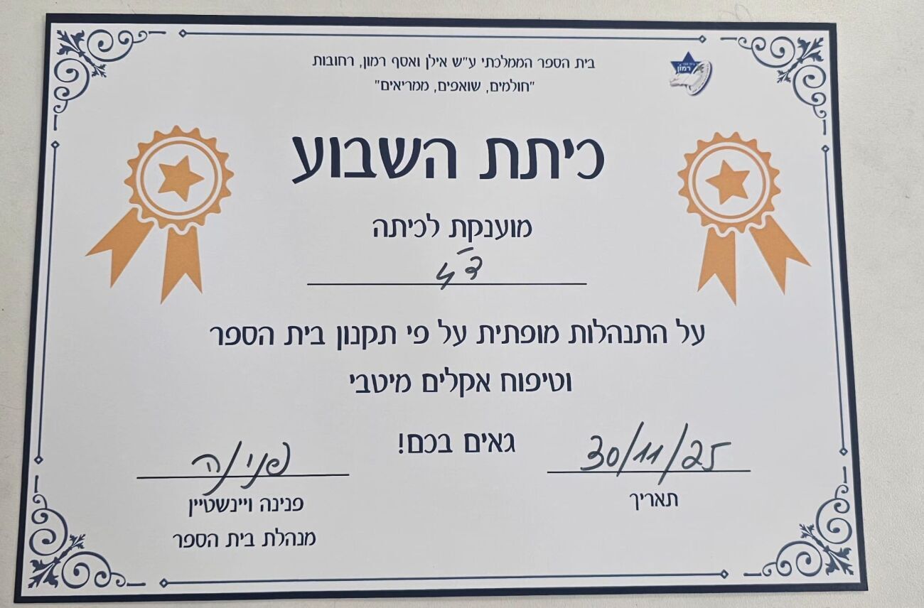 בית ספר רמון ברחובות השיק את תכנית "כיתה במסלול" בה התלמידים מתחייבים להתנהגות חברית בהפסקות והתארגנות לשיעורים
