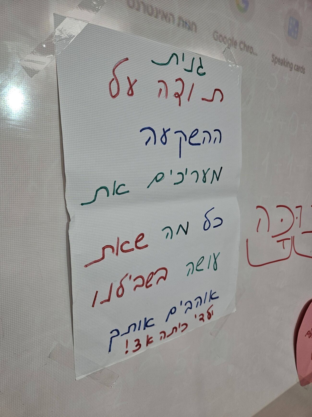 היום נפתח בקבלת פנים שערכה מועצת התלמידים, אשר קיבלה את פני הצוות החינוכי בחיוכים ובשוקולדים שהמתיקו את הבוקר. הורי התלמידים נרתמו להצלחת היום והשקיעו בקישוט המקום, בארוחת בוקר עשירה, במתנות ובתשומת לב שהורגשה בכל פרט.