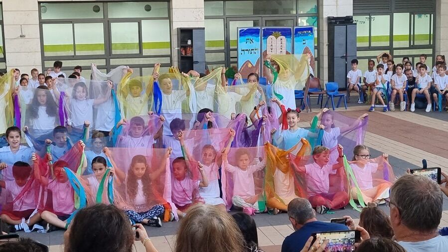 טקס קבלת התורה מרגש בבית הספר 'פרחי המדע' ברחובות: תלמידי כיתה ב' חגגו את תחילת לימודיהם בשירה, דקלום וריקודים
