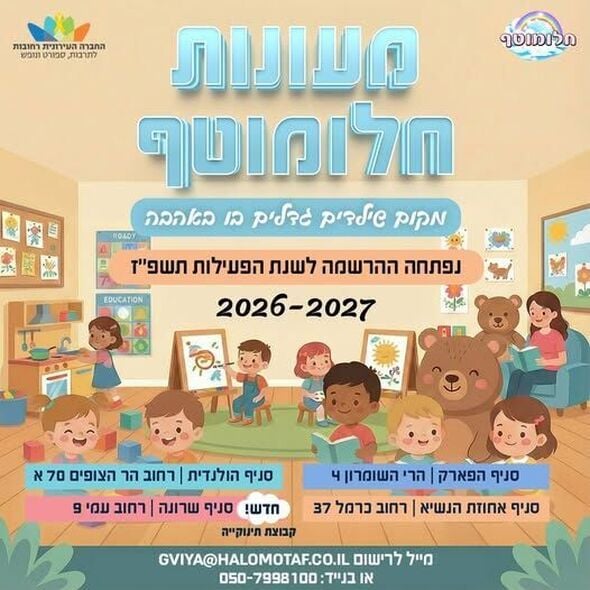 נפתחה ההרשמה למעונות היום "חלומוטף" של החברה העירונית רחובות לשנת הלימודים תשפ"ז (2026-2027)