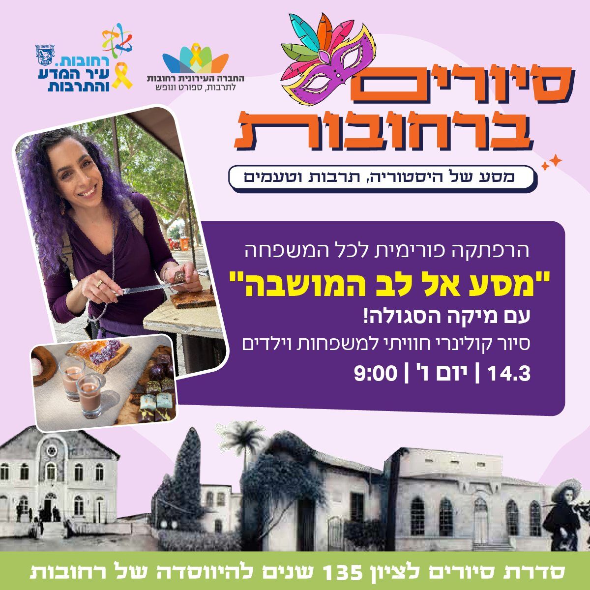 מחפשים פעילות משפחתית מיוחדת לפורים? בואו למסע מרתק עם מיקה הסגולה – עיתונאית קולינריה, אשת יין ותושבת העיר.