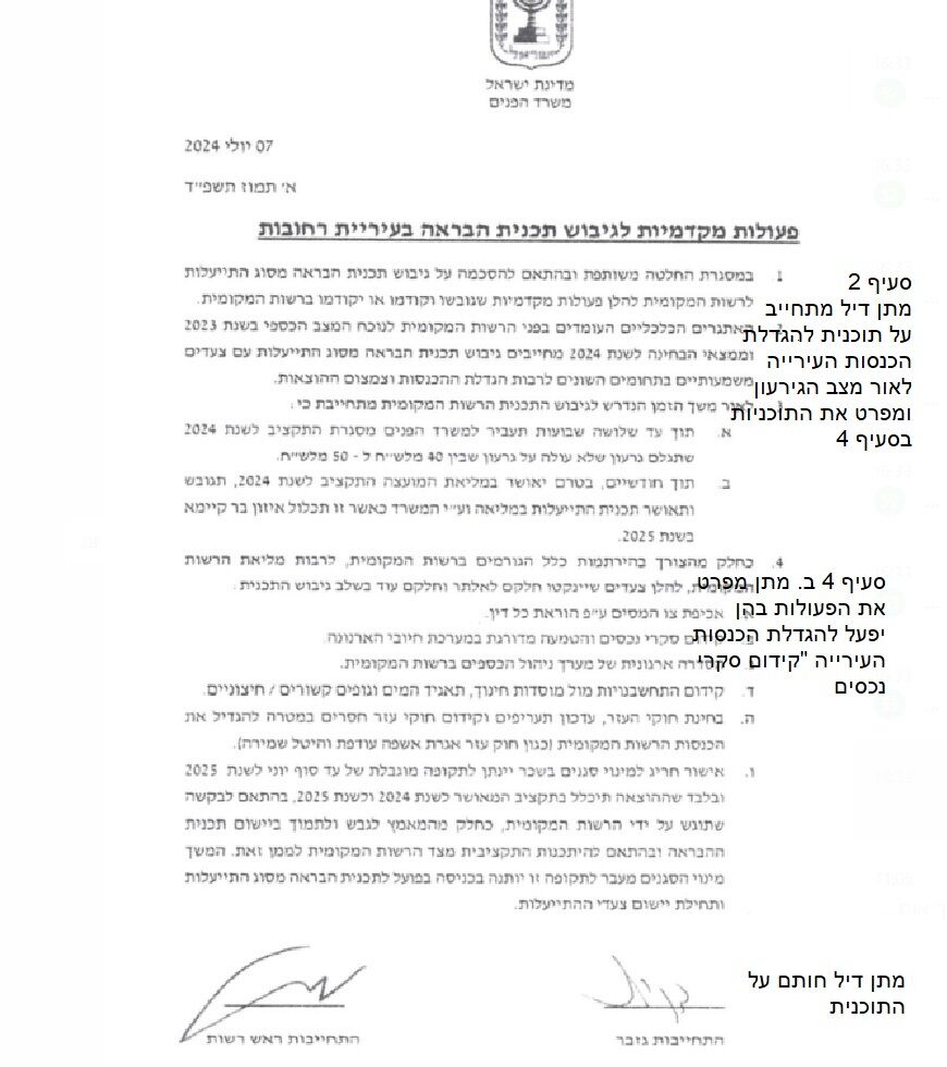 מתן דיל חותם למשרד הפנים על תוכניות להגדלת מקורות ההכנסה של העירייה ומפרט במסמך מה התוכניות להגדלת הכנסות העירייה מהארנונה על ידי קידום סקר נכסים