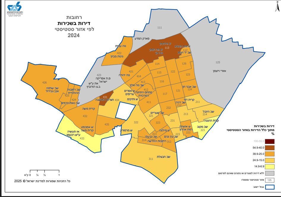 בעיר קיימות 50,775 דירות מתוכן 15,111 דירות בשכירות -29.8%