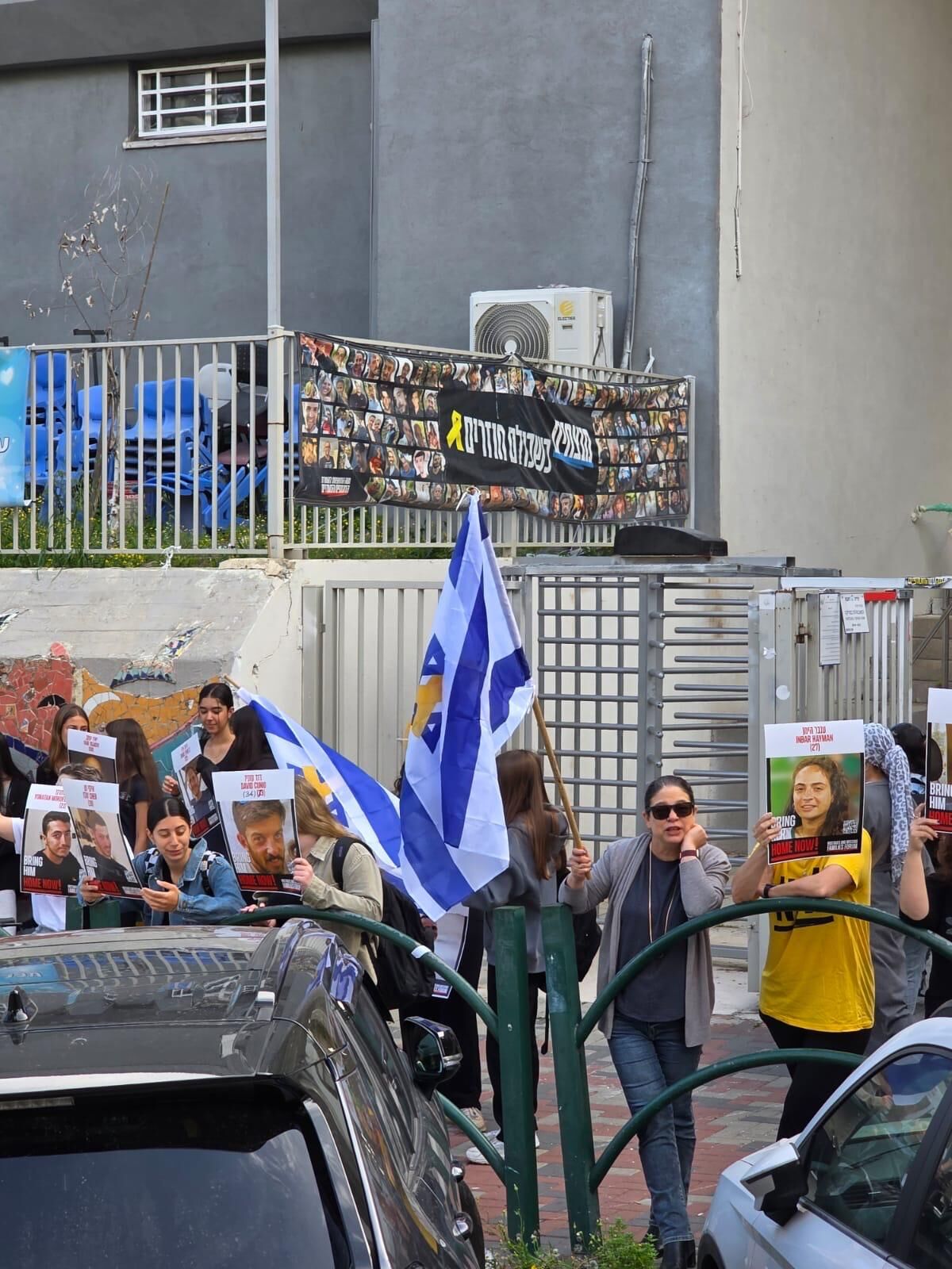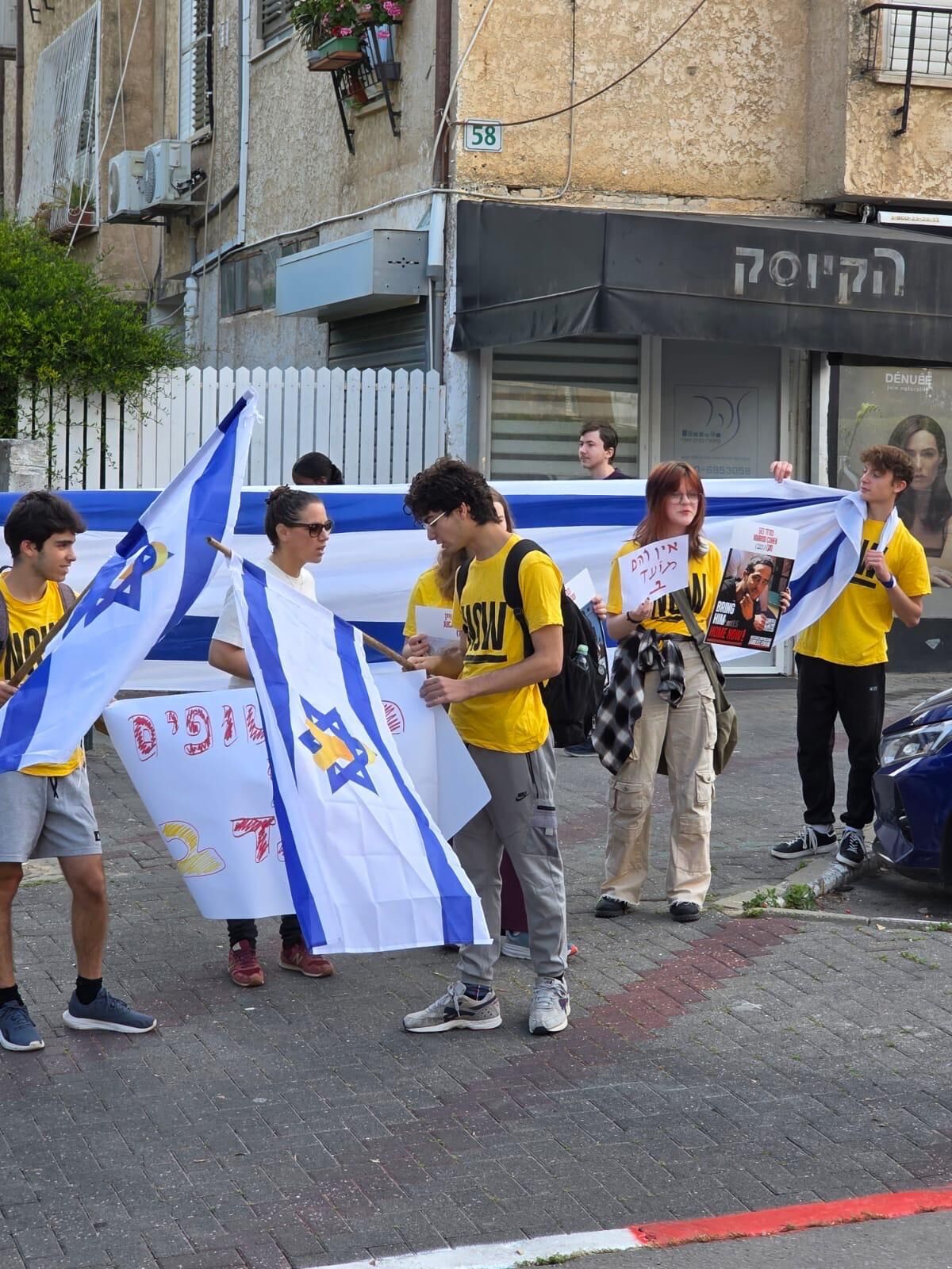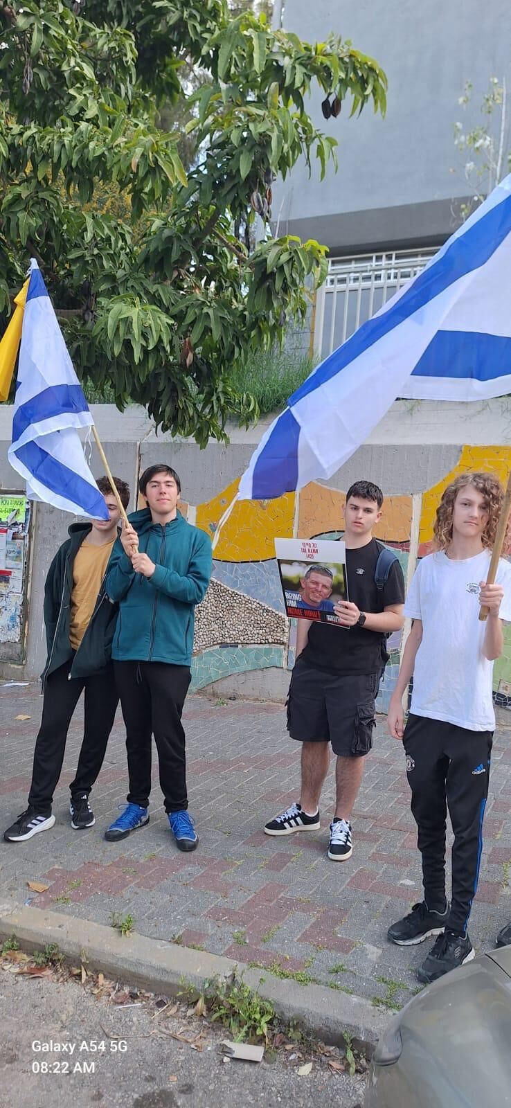 התלמידים והתלמידות עמדו בשער בית הספר ברחוב מנוחה ונחלה מ 8:00 עד 8:30 בקריאה להחזרת החטופים.