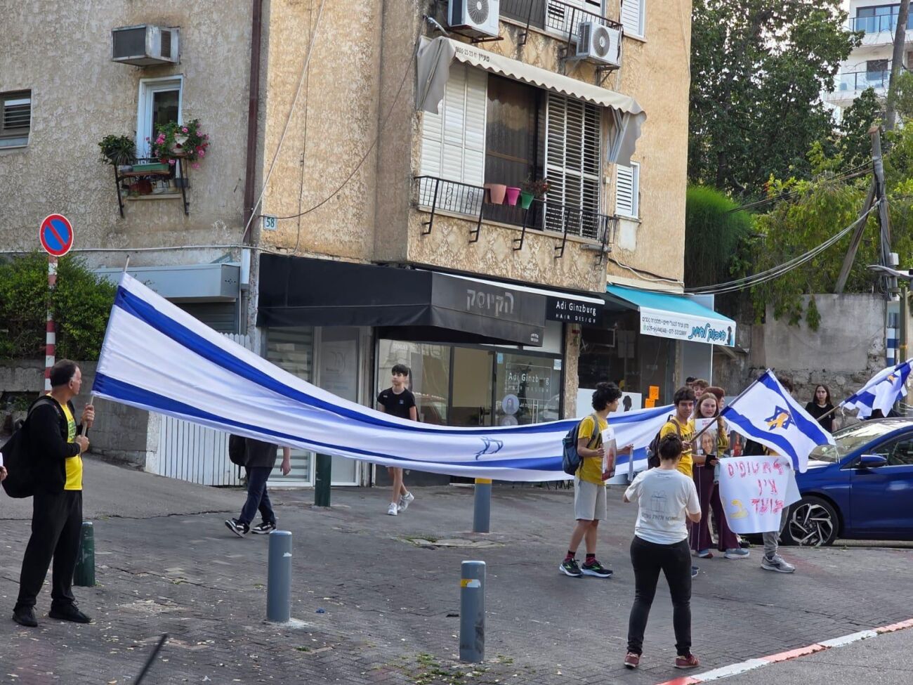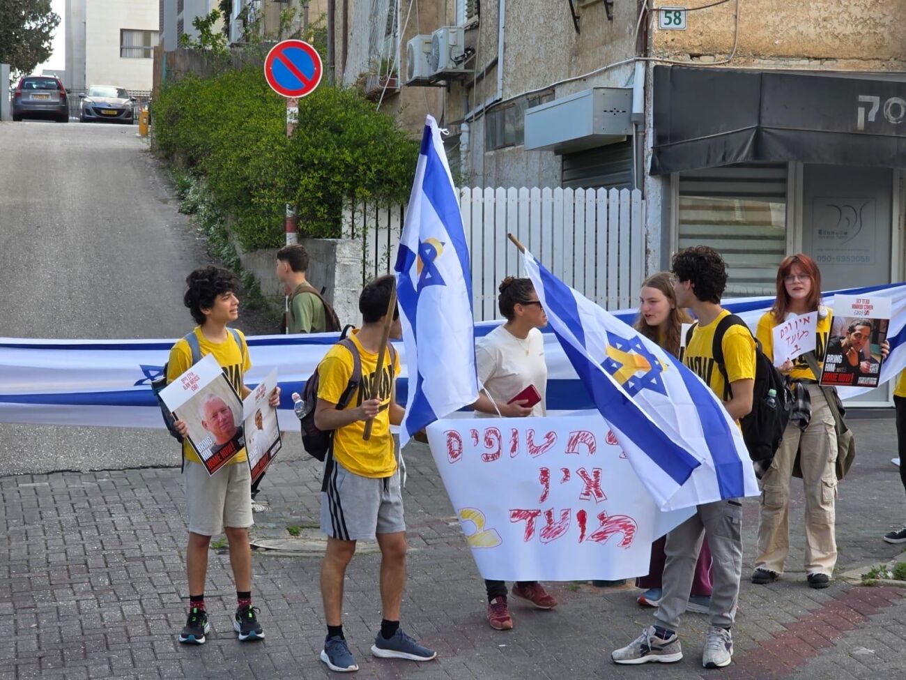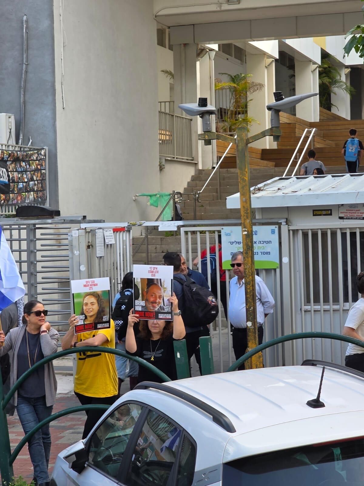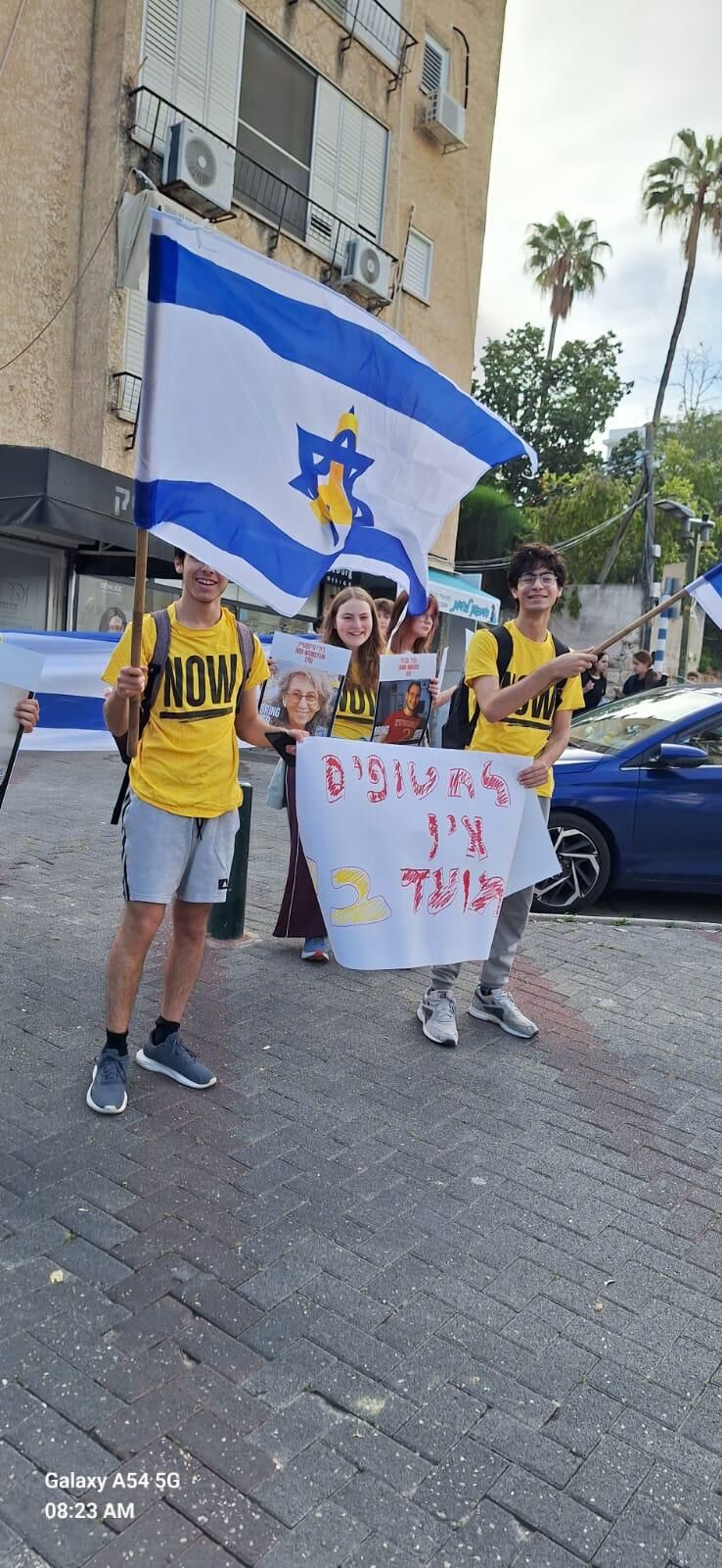 התלמידים והתלמידות עמדו בשער בית הספר ברחוב מנוחה ונחלה מ 8:00 עד 8:30 בקריאה להחזרת החטופים.
