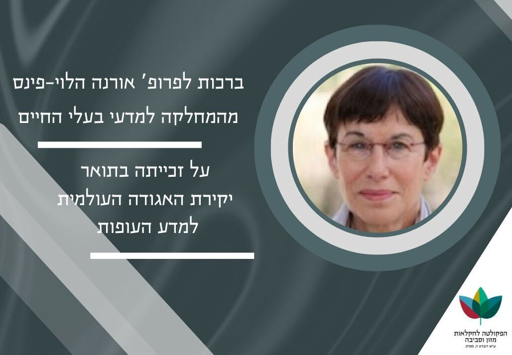 פרופ' אורנה הלוי-פינס, מהמחלקה למדעי בעלי החיים בפקולטה לחקלאות, מזון וסביבה ע"ש רוברט ה. סמית ברחובות, זכתה להוקרה ייחודית בכנס השנתי של האגודה העולמית למדע העופות. במהלך הכנס הוענק לה התואר "יקירת האגודה" כהוקרה על תרומתה המדעית החשובה בתחום.