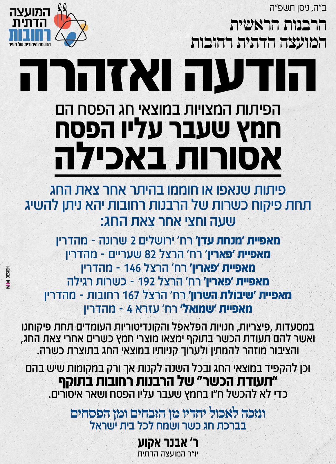 מכירת החמץ דרך המועצה הדתית