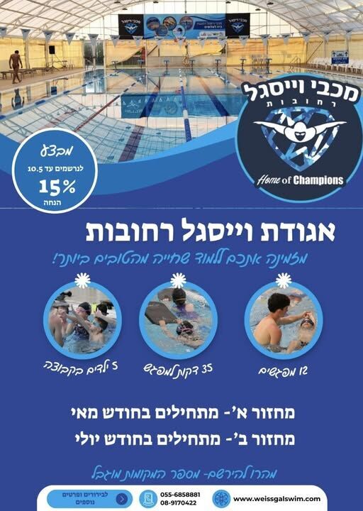 נפתחה ההרשמה לקורסי השחייה של הקיץ באגודת מכבי וייסגל רחובות