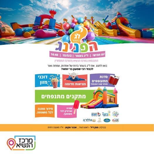 חגיגת ל"ג בעומר במרכז המסחרי "הנשיא" ברחובות: מופע קצב, מציאות מדומה, מתנפחים, דוכני אוכל ומתנה לכל משתתף. חמישי 15/5