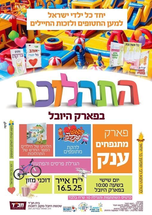 רחובות: תהלוכת ל"ג בעומר של בית חב"ד שכונות היובל מקוב תתקיים ביום שישי הקרוב (10:00) בפארק היובל עקב שינויים במערכת החינוך; האירוע יוקדש לתפילה למען החטופים