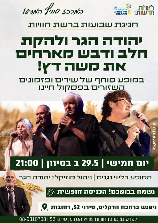 רשת חוויות מזמינה לחגיגת שבועות קהילתית בחוויות שוויץ המדע: יהודה הגר, להקת חלב ודבש ומשה דץ במופע זמר וצליל עם שירה בציבור