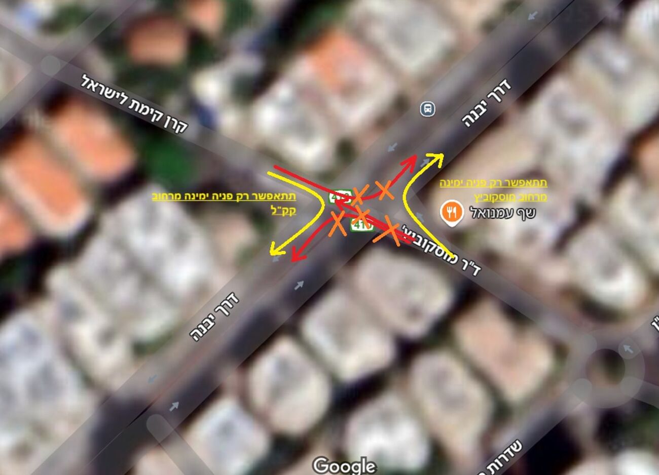 *תתאפשר פנייה ימינה ממוסקוביץ' וקק"ל לדרך יבנה*