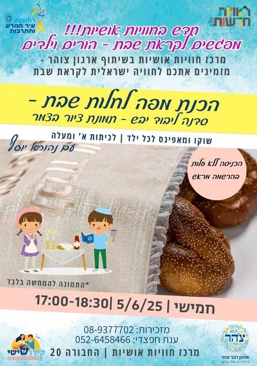 במסגרת המפגשים, יתקיימו פעילויות מגוונות, כאשר המפגש הקרוב יתמקד בהכנת מפה מעוצבת לחלות שבת.
