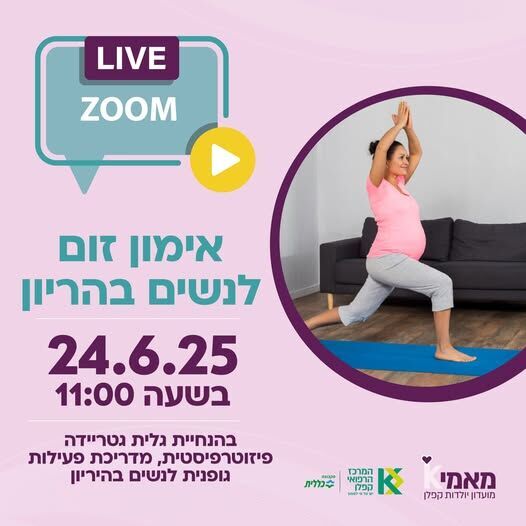 המרכז הרפואי קפלן מציע: אימון תנועה ייחודי וחינמי בזום לנשים בהריון עם פיזיותרפיסטית מוסמכת ב-24/06