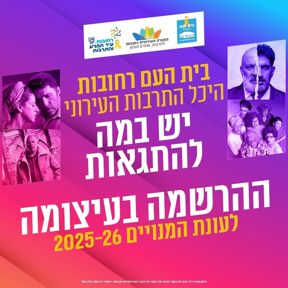 ההרשמה לעונת המנויים החדשה של בית העם רחובות - היכל התרבות העירוני לשנים 2025־2026 בעיצומה, ולמחדשי המינוי ולנרשמים חדשים מוצעת תוכנית תרבותית עשירה ומגוונת.