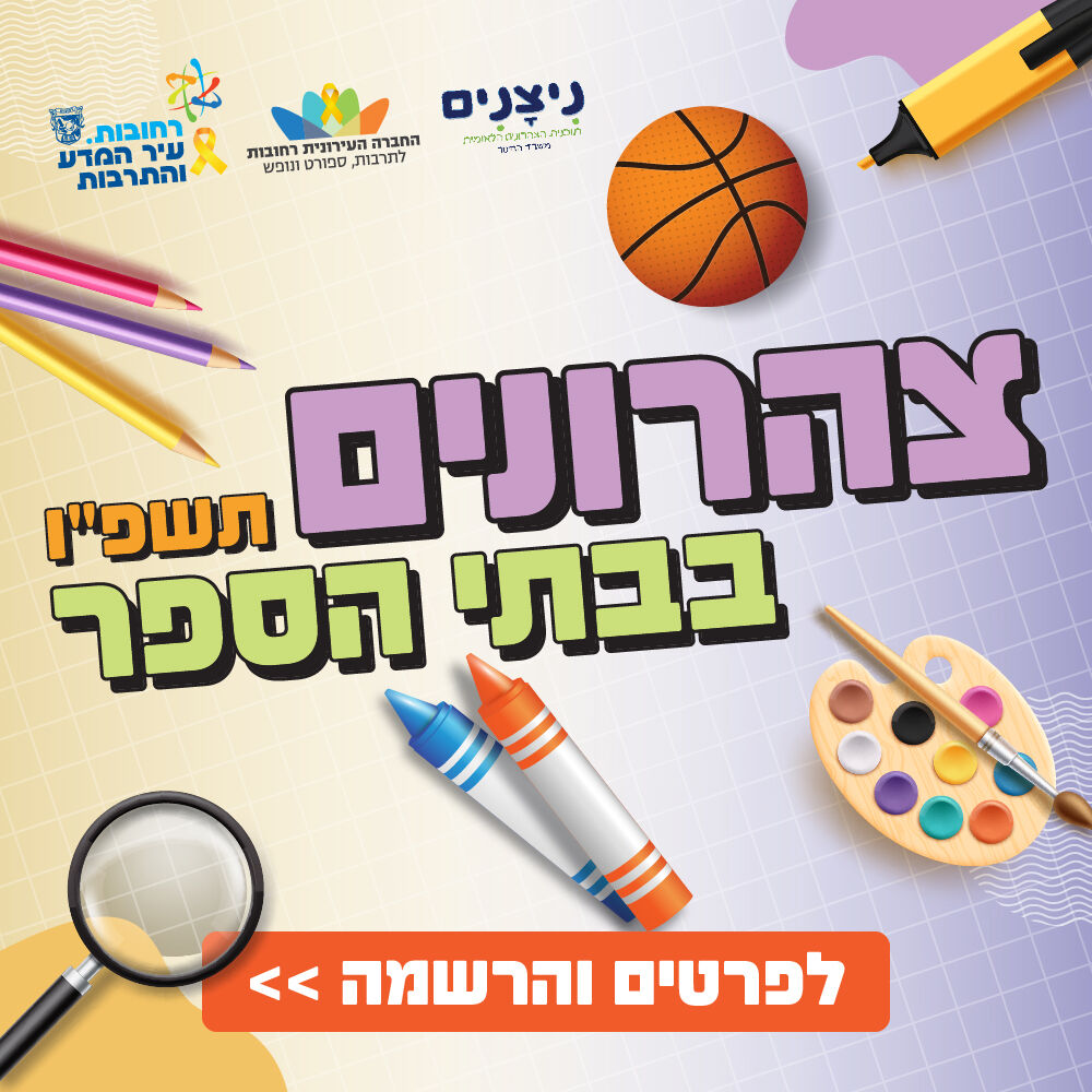 החלה ההרשמה לצהרוני החברה העירונית רחובות לשנת הלימודים תשפ"ו. כל הפרטים על הצהרונם והרשמה בכתבה