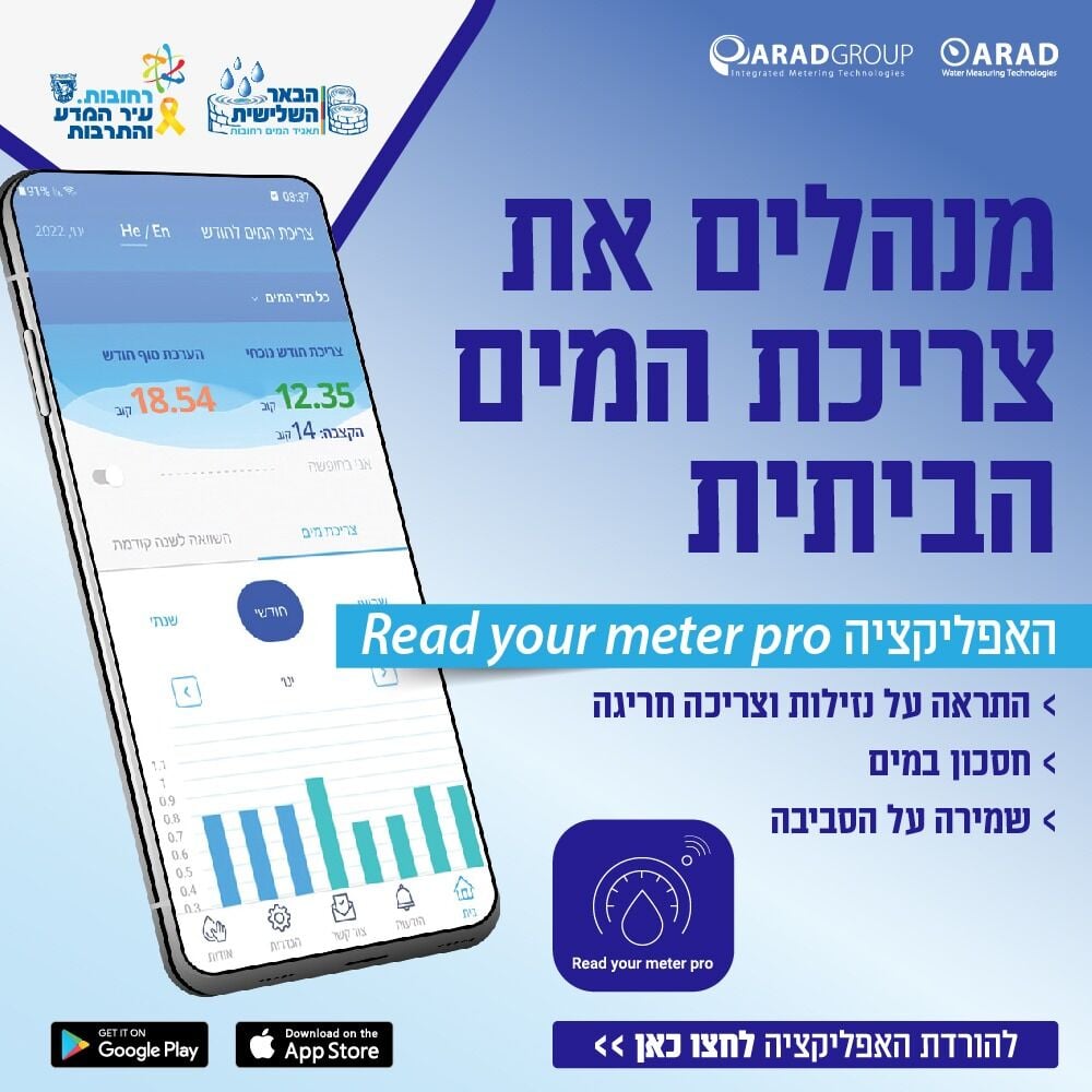 האפליקציה מתריעה בזמן על נזילות וצריכה חריגה בזמן אמת, עוזרת לכם לחסוך מים וכסף וגם לשמור על הסביבה. להורדת האפליקציה חפשו בחנויות האפליקציות של אנדרואיד או אייפון – Read your meter pro והורידו את האפליקציה ללא עלות.