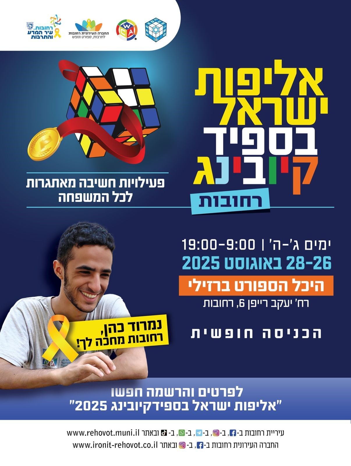 רחובות תארח את אליפות ישראל בספידקיובינג 2025: השנה בסימן השבת החייל החטוף נמרוד כהן
