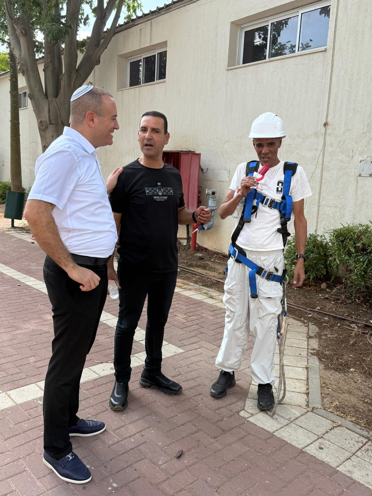כאות הערכה לפועלם, וכדי לוודא את שלומם ובריאותם, יצאו השבוע לשטח ראש העיר מתן דיל, מנכ"ל העירייה מושיקו ארז ומנהלות ומנהלי האגפים הרלוונטיים, פגשו את העובדות והעובדים, דרשו בשלומם וחילקו להם ערכות קיץ ייעודיות, שהוכנו מראש, הכוללות בקבוק מים קרים, כובע להגנה מהשמש וקרם הגנה.