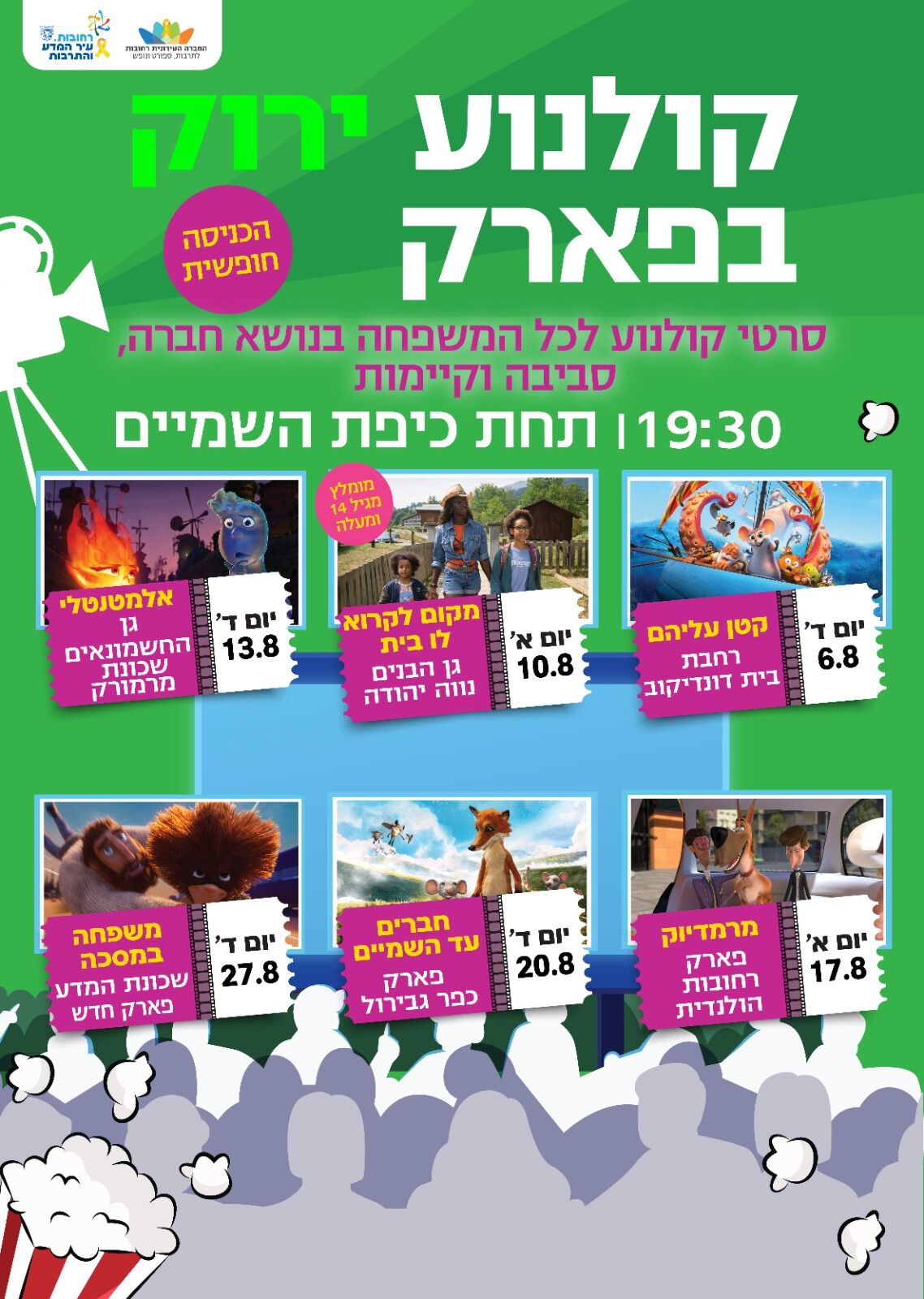 בעירייה ובחברה העירונית מזמינים את תושבי ותושבות העיר להגיע להקרנות וממליצים להביא לפעילויות מחצלות וכריות.